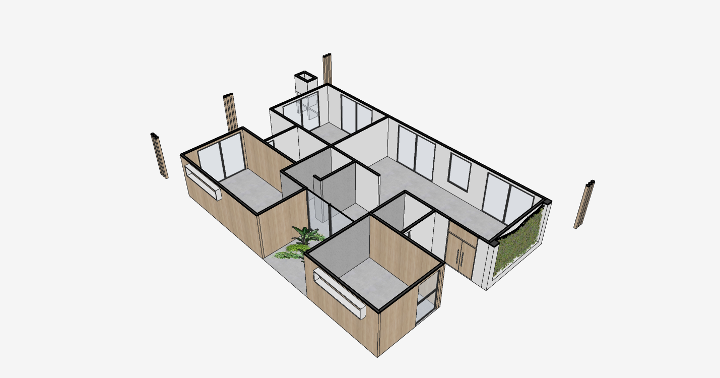 El modelo incorpora una envolvente eficiente que mejora el confort térmico y permite una experiencia interior estable. Las aperturas están ubicadas estratégicamente para favorecer ventilación cruzada y una iluminación homogénea.